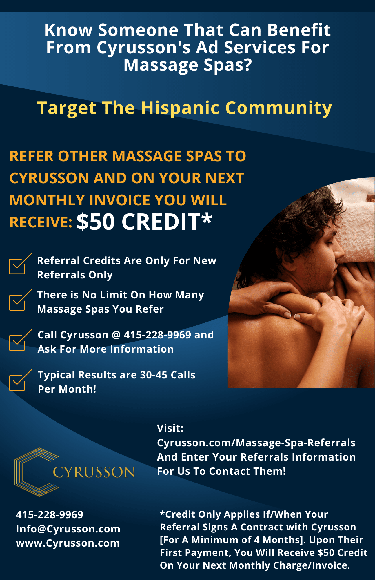 Know Someone That Can Benefit From Cyrusson’s Ad Services For Massage Spas?